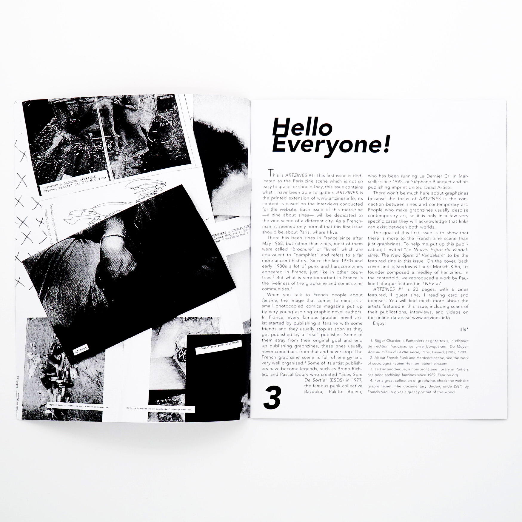 Le premier numéro de la série ARTZINES (12,5 numéro à ce jour) est consacré à Paris. Comme pour les autres numéros consacrés à des villes ou des lieux, j’ai essayé de donner une vision globale de la scène parisienne à travers une sélection transgénérationelle que je considère représentative de cette scène : Elles Sont De Sortie de Pascal Doury et Bruno Richard, Olivier Nourisson, Le Gros Monsieur, Red Lebanese et Vieux Mag. L’artiste invitée est Laura Morsch-Kihn et son zine inspiré par le graffiti Le Nouvel Esprit du Vandalisme.