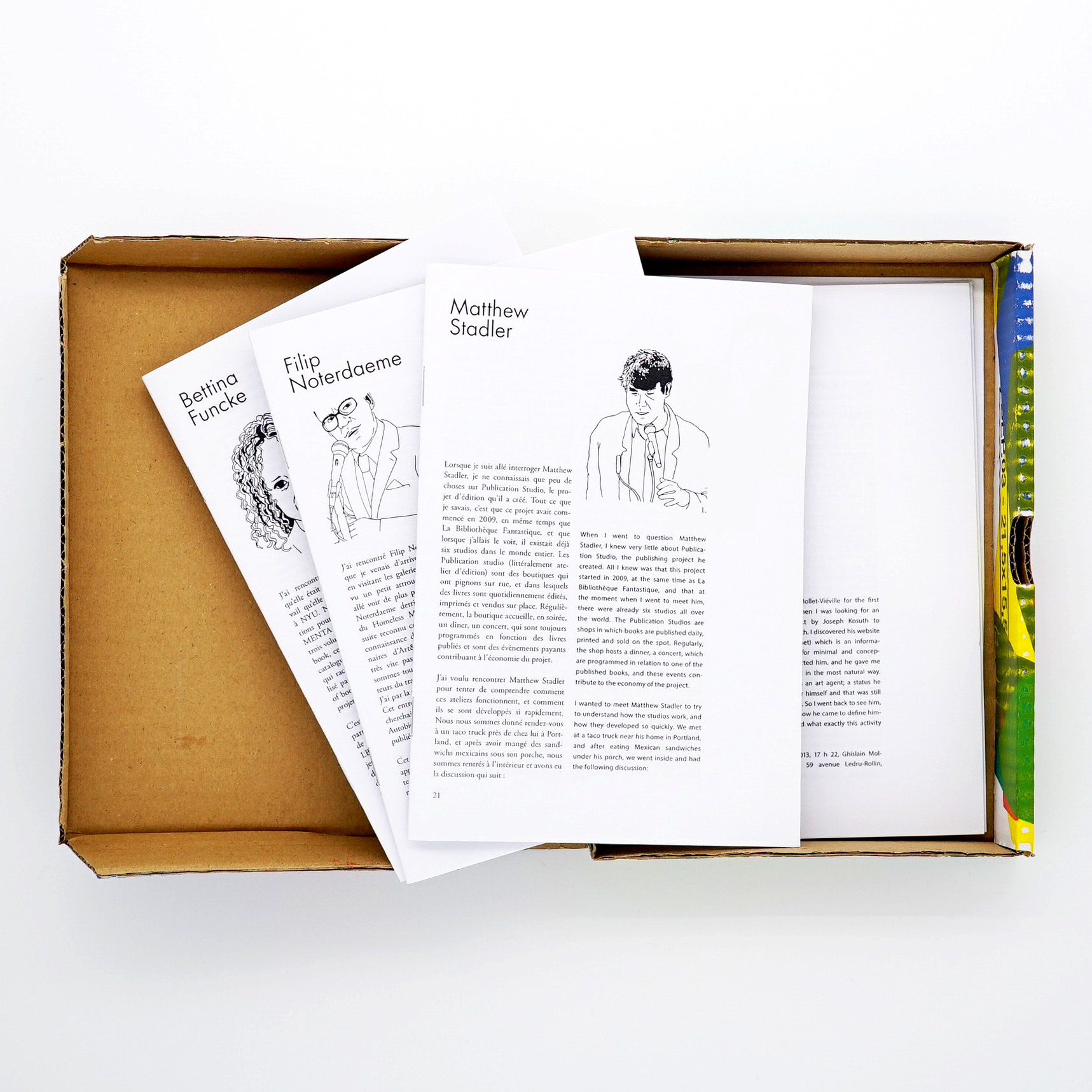 This box set contains 8 booklet each dedicated to an interview made for my PhD dissertation titled Portrait of the Artist as a Publisher, Publishing as an Alternative Artistic Practice. I called it Outsiders because one of the things that these people have in common is the fact that they exist in the margins of the mainstream art world. They are an artist/bookseller, a museum director and writer, an artist pharmacist, an theoretician, an art agent and others: Ben Kinmont, Matthew Stadler, Filip Noterdaeme, Bettina Funcke, Dana Wyse, Jean-Claude Moineau, Ghislain Mollet-Viéville et Bernard Brunon.
